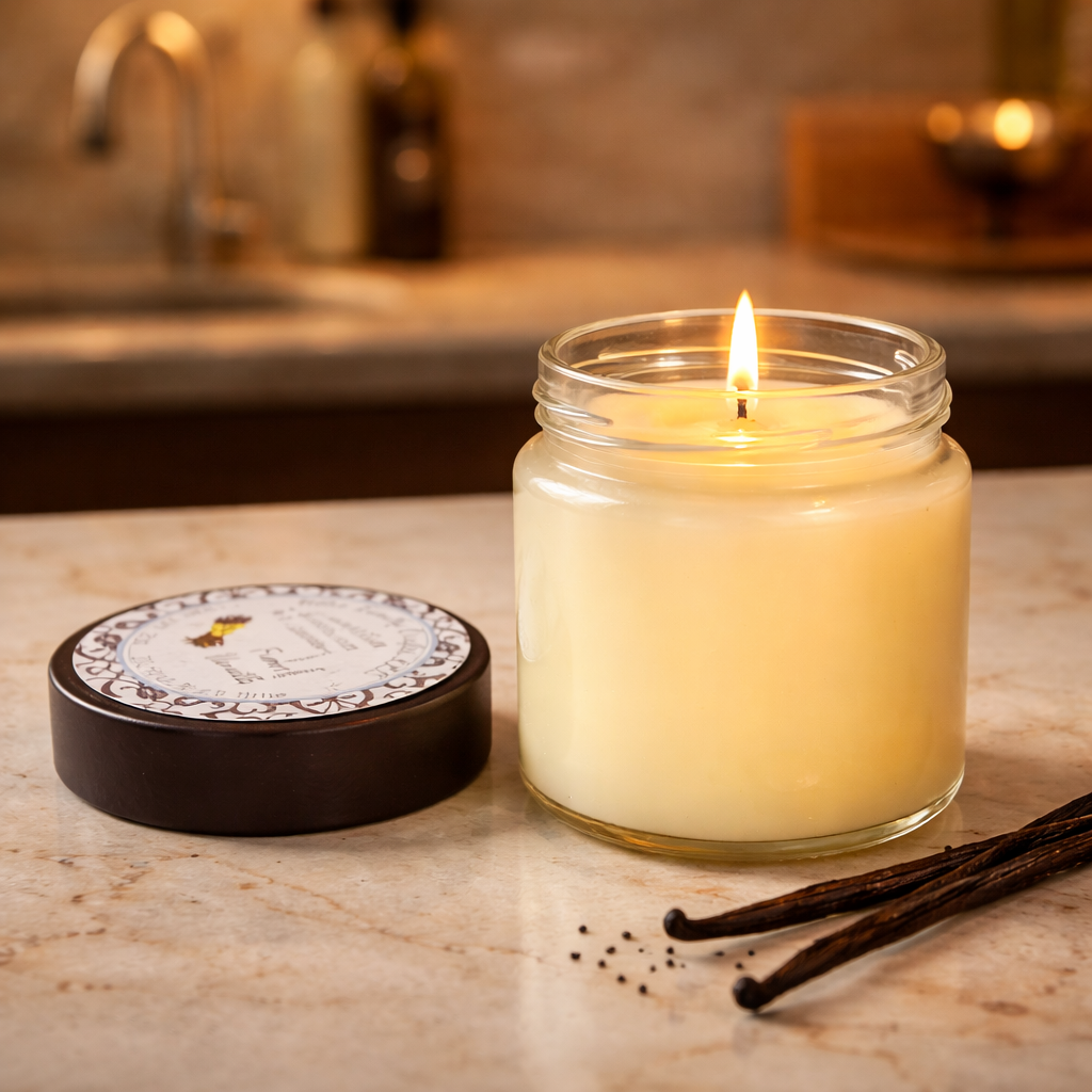 Our French Vanilla candle delivers a warm, rich aroma that fills the senses with sweet, buttery comfort. The fragrance opens with creamy notes of crushed vanilla beans, beautifully accented by soft berries and delicate vanilla orchid, resulting in a smooth, indulgent French Vanilla Cappuccino aroma that’s both comforting and luxurious.