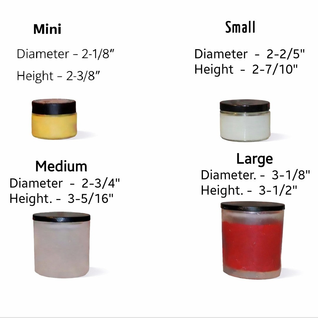 Medium is a 4.5 oz Net Wt candle with a minimum of 45 hours of burn time.